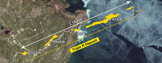 PLS項目目前已發(fā)現(xiàn)的礦體呈東西走向,從西到東依次為R1515W,R840W, R00E,R780E 和R1620E,長度約3.17 公里,組成加拿大薩斯喀徹溫省已發(fā)現(xiàn)的最長的高品位鈾礦成礦帶,亦是全球最大的待開發(fā)高品位鈾礦項目之一。當前勘探結(jié)果表明,PLS項目未來仍具備較高的資源增長潛力前景。